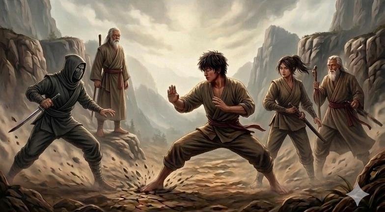 Jaka Gendra berdiri di tengah lembah dengan kuda-kuda rendah. Telapak kakinya menekan tanah dengan kuat, seperti yang diajarkan Resi Wiradarma.